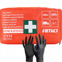 DUŻY NIEZBĘDNIK SAMOCHODOWY APTECZKA + TRÓJKĄT + KAMIZELKA RĘKAWICE ATESTY UNIA EUROPEJSKA